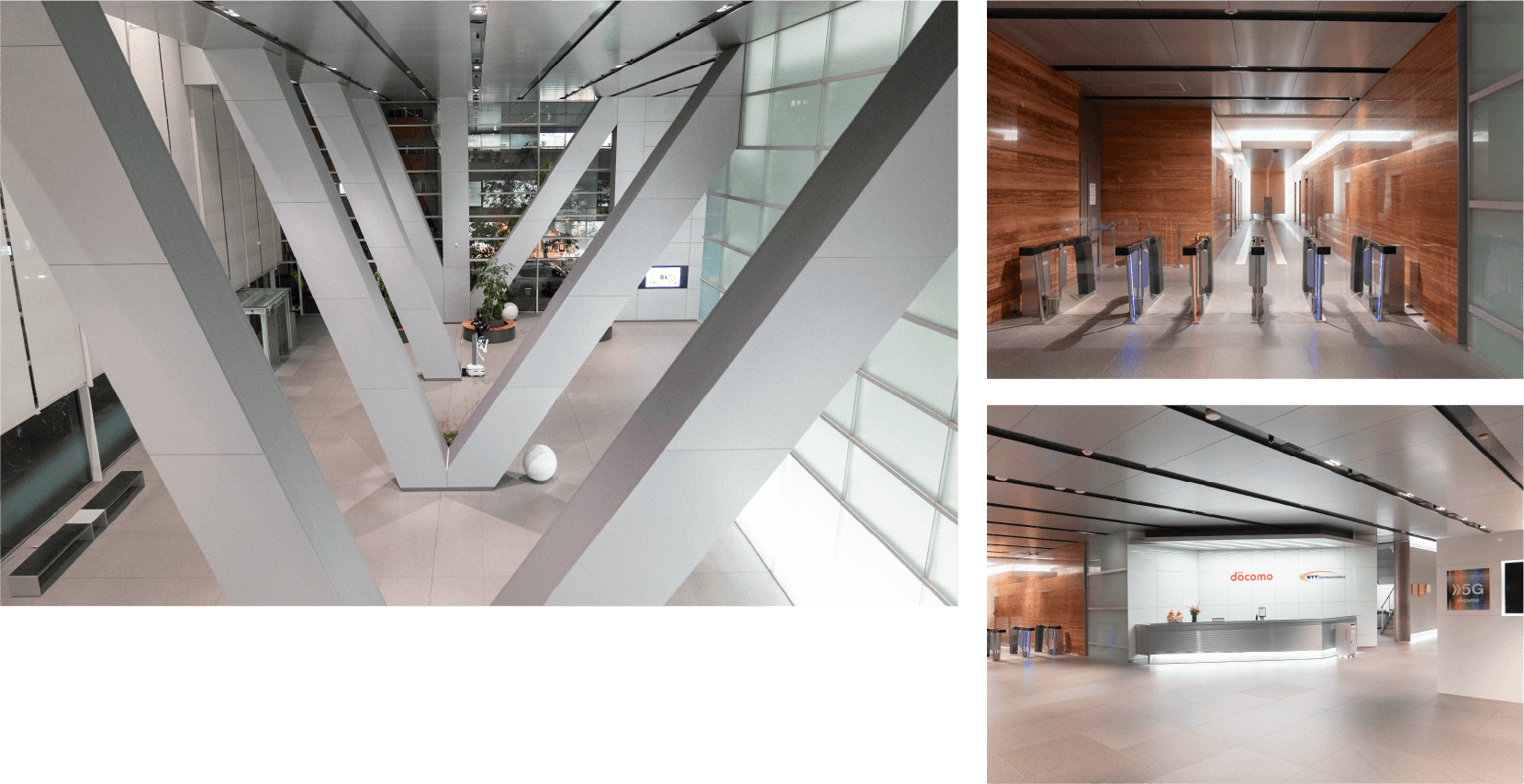 ドコモCS東海の本社が入居する「アーバンネット名古屋ビル」。NTTドコモ東海支社のオフィスも同じビルにあります。エスカレーターを上った2階が、ドコモグループのエントランスとなっています。