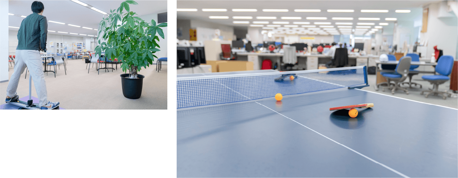 静岡支店は、JR東静岡駅のすぐ近くにある「ドコモ静岡ビル」内にあります。ドコモ静岡ビルは、アンテナを含んだ高さが160mあり、静岡市でもっとも高い建造物です。屋上からはもちろん、上層階からは、富士山の雄大な姿が見られます。また、執務室の横には卓球台があり、休憩時間に楽しんだりしています。