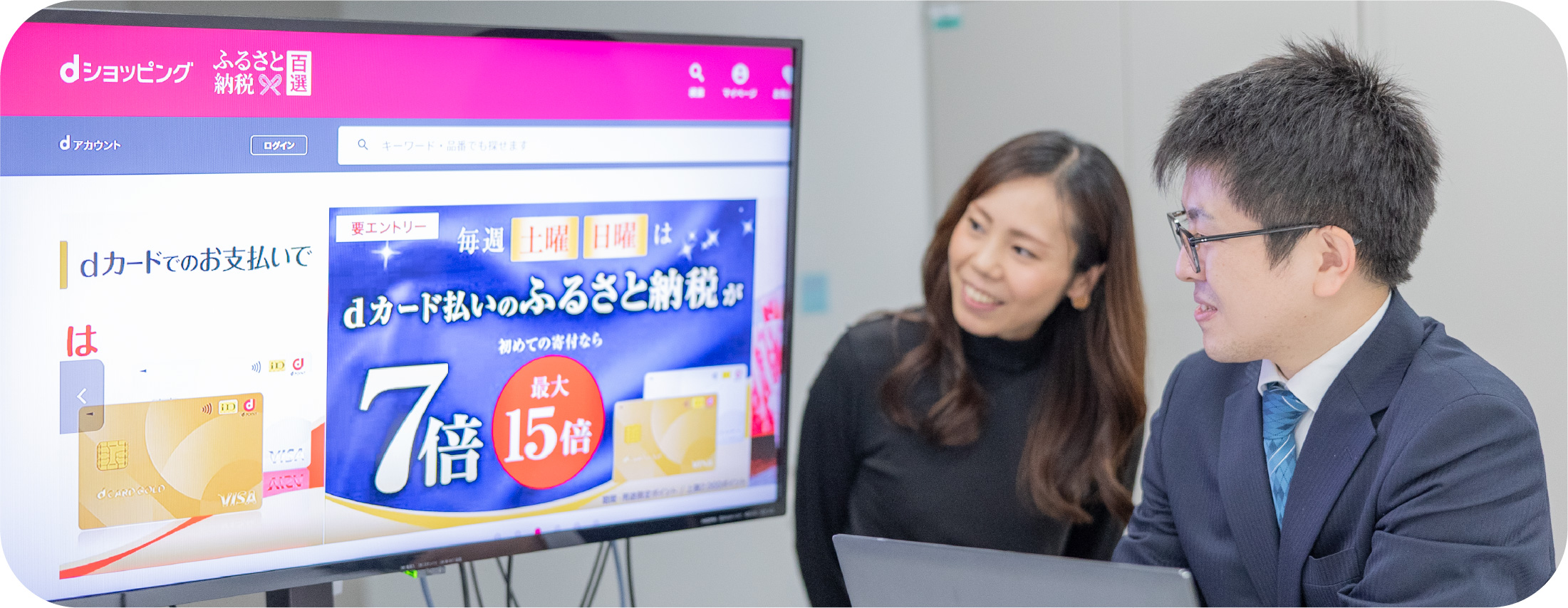 「スマートライフショップ化」の一貫として、ドコモショップが新たに開始したサービスが「ふるさと納税取次サポート」だ。ドコモショップスタッフが、お客さまのふるさと納税を全面的にお手伝いするサービスで、ふるさと納税サイトへの登録から申し込み手続きまで、お客さまのスマホ画面をいっしょに確認しながらサポートする。さらに、制度の仕組みや、寄付金控除を受けるために必要な申請書の記入方法などもわかりやすく説明してフォローする。ドコモは、ふるさと納税サイトの運営企業に支払っている手続き委託費用の一部を取次手数料として各自治体からいただくというビジネスモデルのため、利用者からサポート料金をいただくことはない。無料で利用できるので、お客さまにとって大きなメリットがある。さらにこのサービスは、dカードやd払い、dポイントなどのサービスとの連携・相乗効果も期待できる。まさに地域のスマートライフ推進に貢献できるサービスだと言えるだろう。