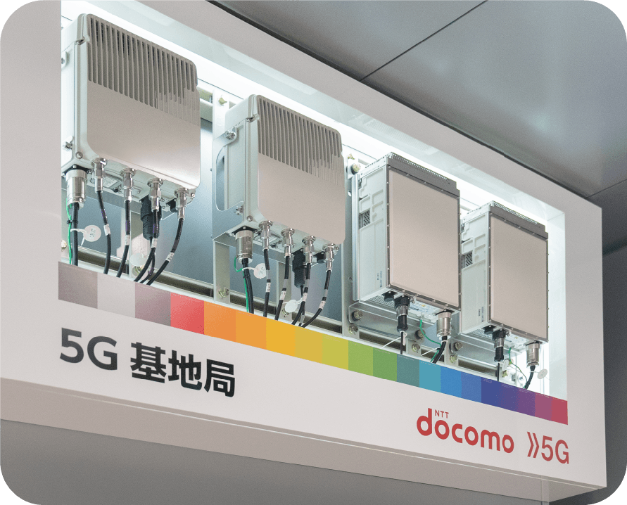 「Q2」で解説した基地局の一例です。ドコモCS東海本社の2Fエントランス付近にあるので、本社を訪れた際には探してみてくださいね。