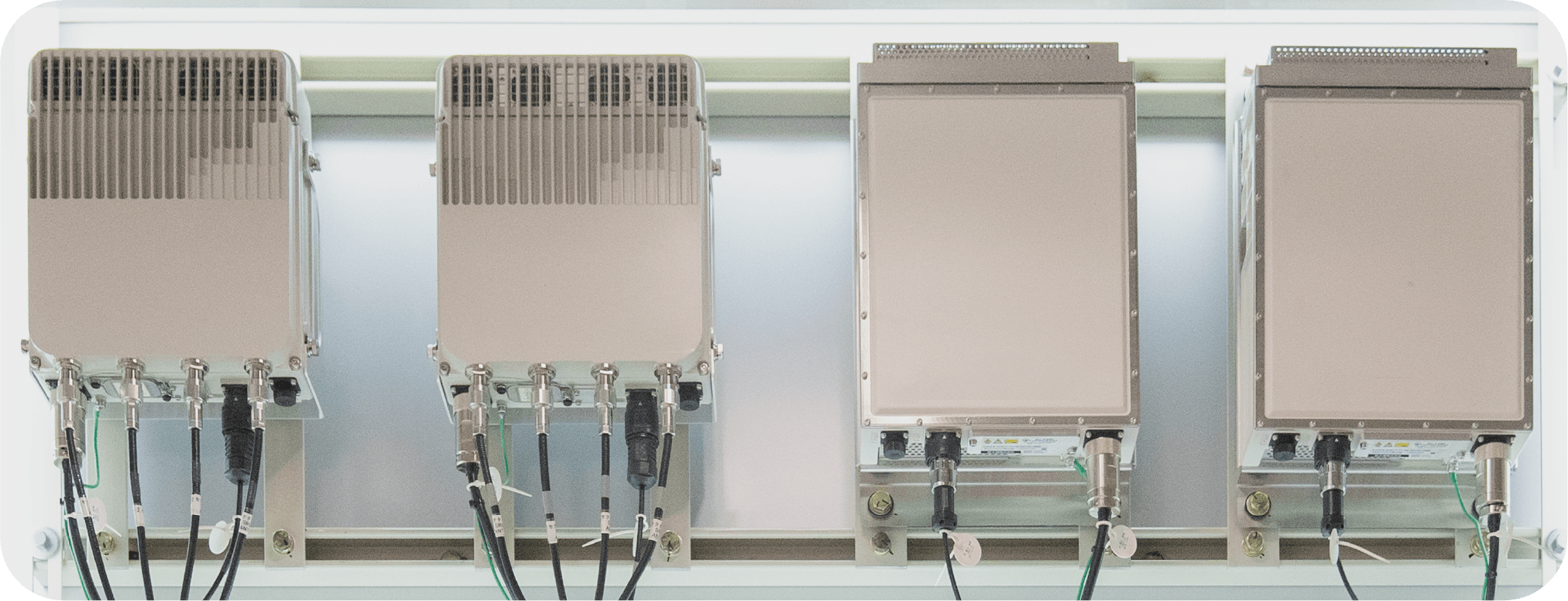 「ドローン中継局」は小型中継局を搭載したドローン。周辺の基地局電波を上空で捉えて中継します。災害による被災エリアが地上から進入できなかった場合でも、ドローン中継局を活用することによってエリアの救済が可能になります。